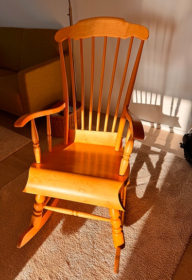 Keinuva puutuoli selkänojalla