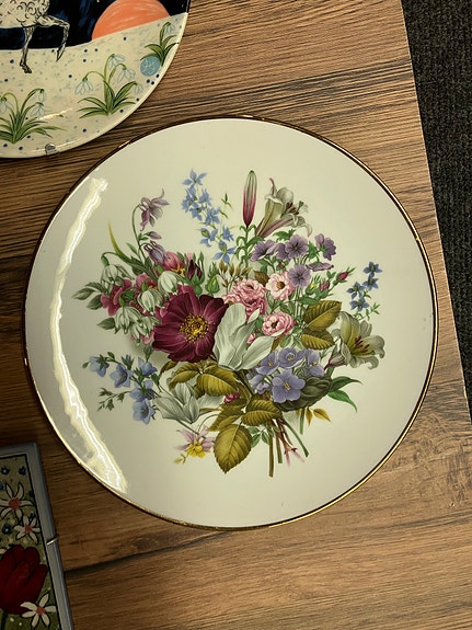 Iittala lautanen kukka- ja lintuaiheinen valkoinen/kulta