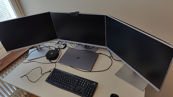 Työpistesetti: 3× HP 23" näyttö + HP USB-C telakka + tarvikkeet