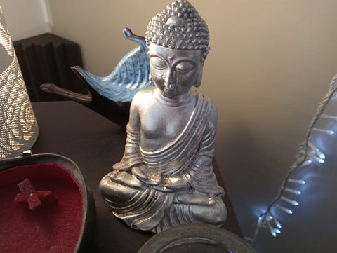 Buddha-patsas hopeanvärinen koriste