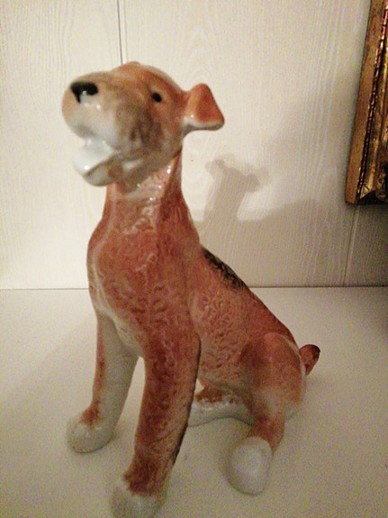 Veistos bullterrieristä, korkeus 22 cm.