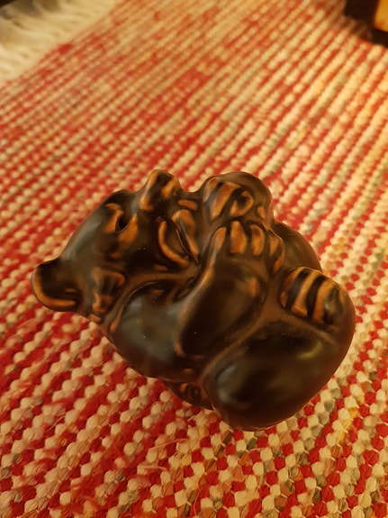 Knud Kyhn, mammutti, kivitavarafiguuri, vihervä+ruskea, painava