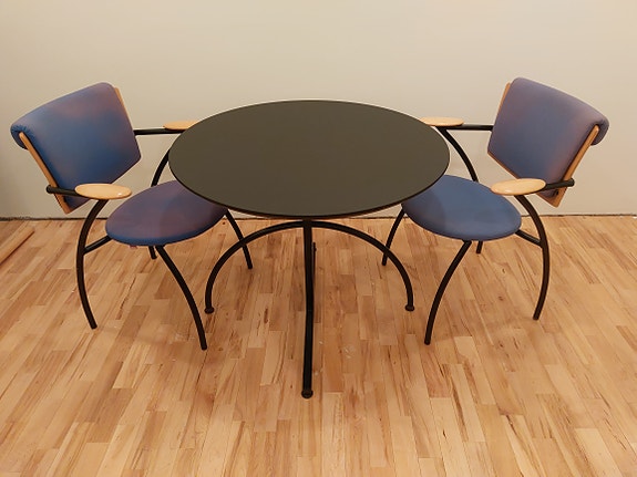 Ysäriä: musta pyöreä ruokapöytä ja kaksi tuolia, Vantaa/kuljetus