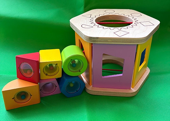 Siirry hakutuloksiinHape puinen lajittelulaatikko värikkäillä palikoilla