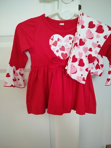 Hame ja housut tytölle, sydän 12-18kk,uusi