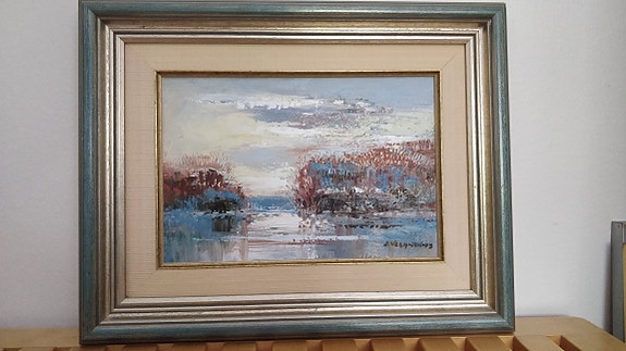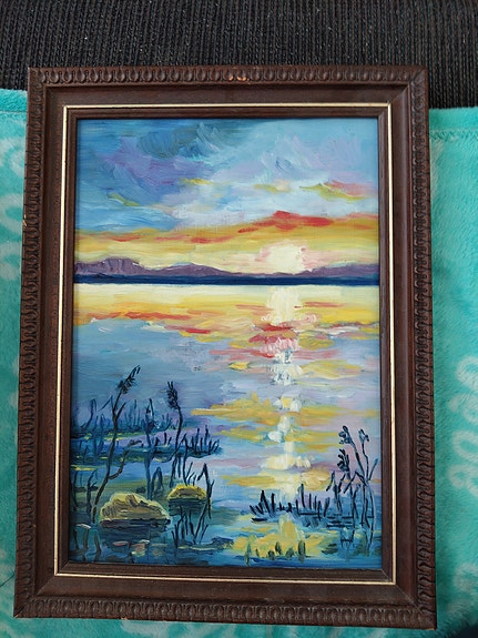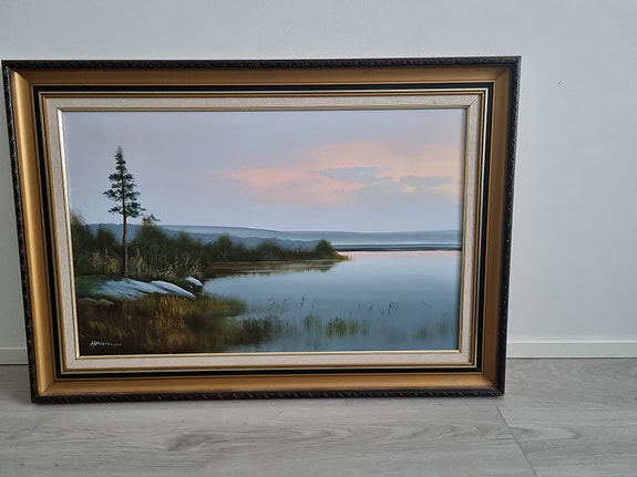 TARJOA! Maisemamaalaus järvimaisema, mäntykehys