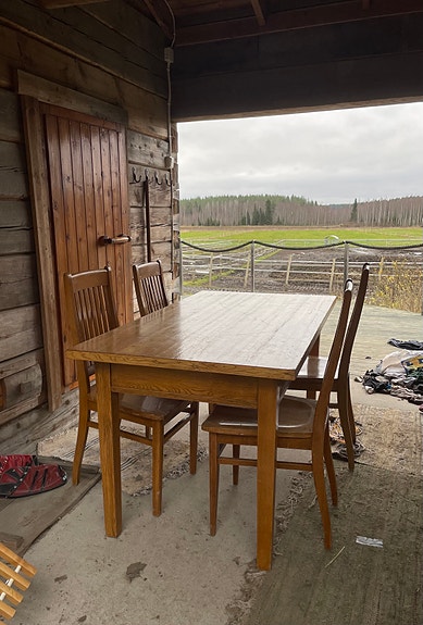 Vanhasta ovesta tehty ruokapöytä