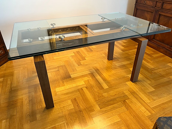 Lasikantinen jatkettava Calligaris -ruokapöytä (pituus 160-240cm)