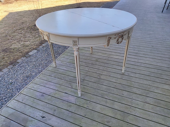 Valkoinen ruokapöytä jatkopaloilla