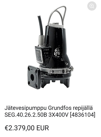 1 000 €Jätevesipumppu Grundfos repijällä SEG.40.26.2.50B 3X400VMäntyharju, Mäntyharju Keskus, Etelä-Savo5 pvLisää suosikiksi.Avaa ilmoitus