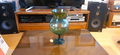 Arabia lampunjalka, vihreää lasia, design Heikki Turunen