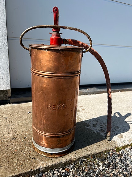 Reko kuparinen käsiruisku letkulla