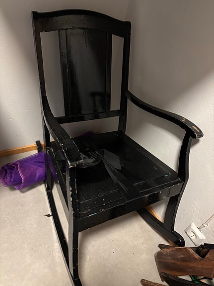 Mustaksi maalattu puinen keinutuoli käsinojilla