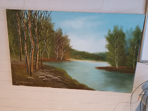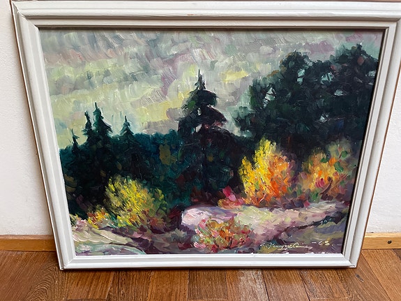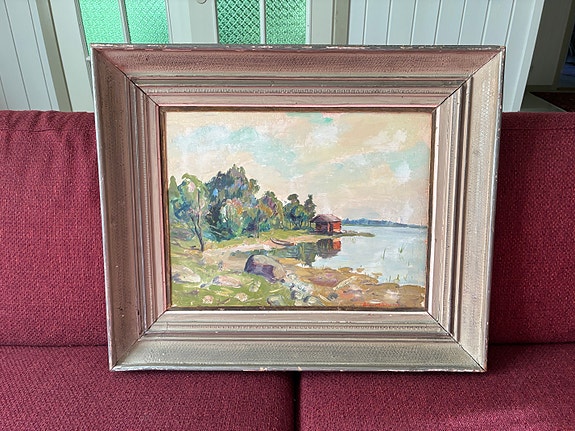 TARJOA! Maisemamaalaus järvimaisema, mäntykehys