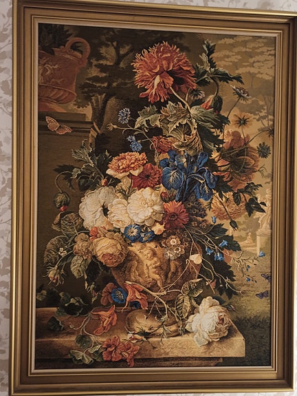 Kukkakuvioitu taulu kehystetty
