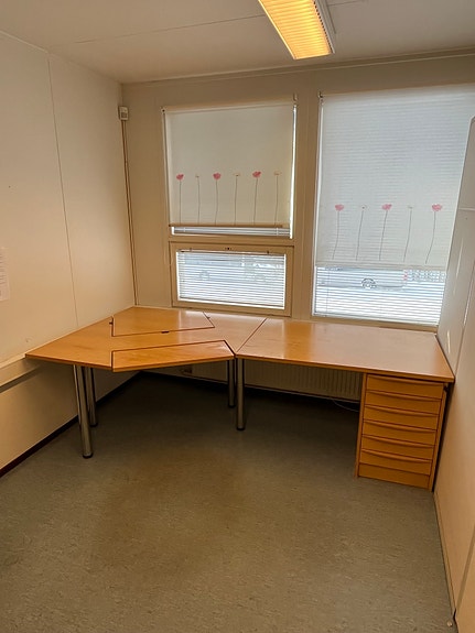 2x Kulmamallinen työpöytä laatikostolla, puunvärinen