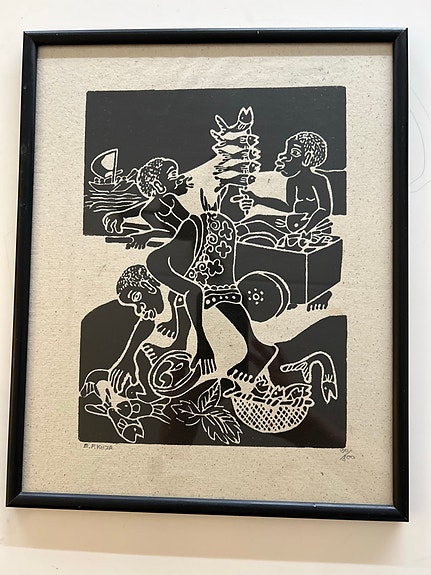 Tansanialainen E. F. Kiiza taidevedos kehystetty