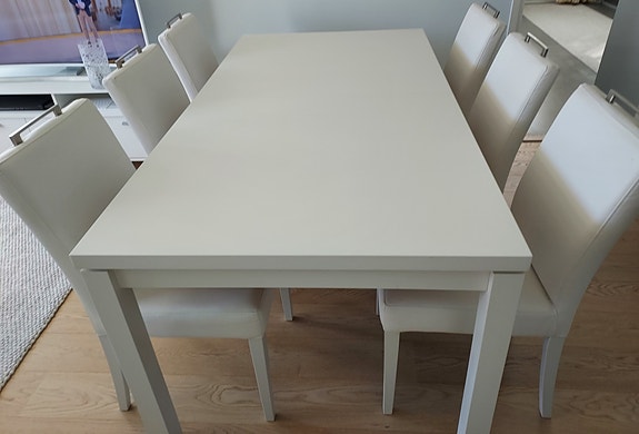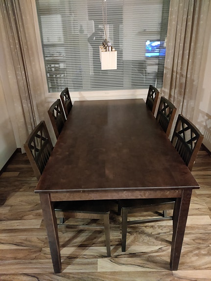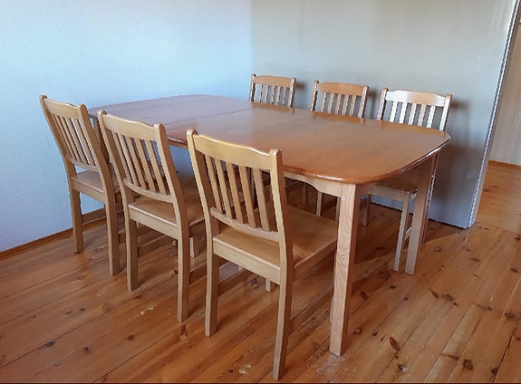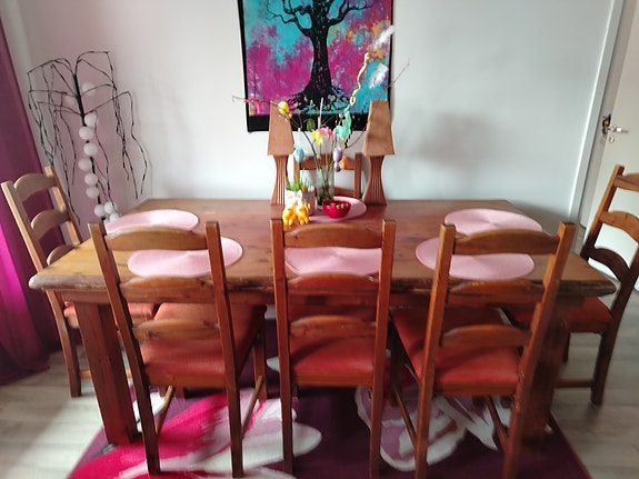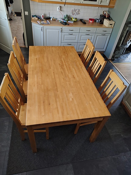 Hieno Ruokapöytä ja kuusi tuolia.