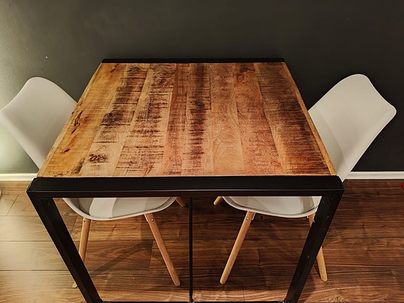 Korkea ruokapöytä tuoleilla