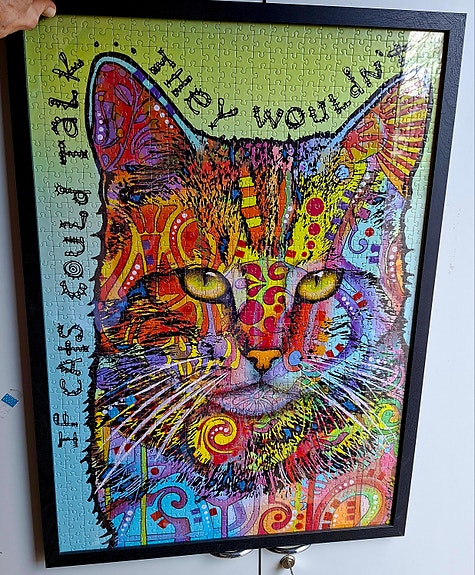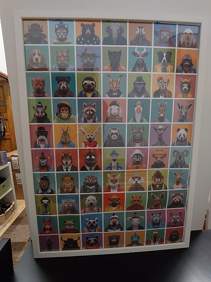 Kehystetty kissataulu palapeleistä
