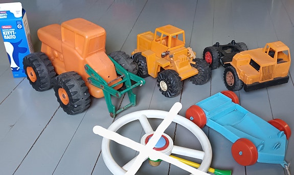 Huonokuntoinen vanha lelu / muovilelu leluauto lelut leluja