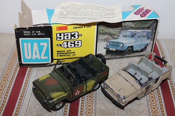 2x UAZ 469 vanha aito CCCP Venäjä armeija auto 1:43 17cm pienoismalli 1/43