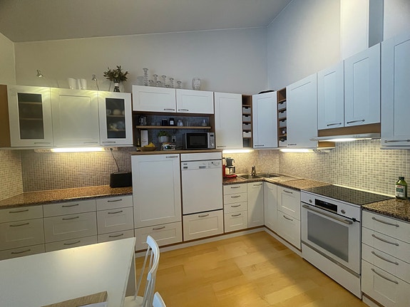 Erittäin siisti keittiökokonaisuus kodinkoneineen