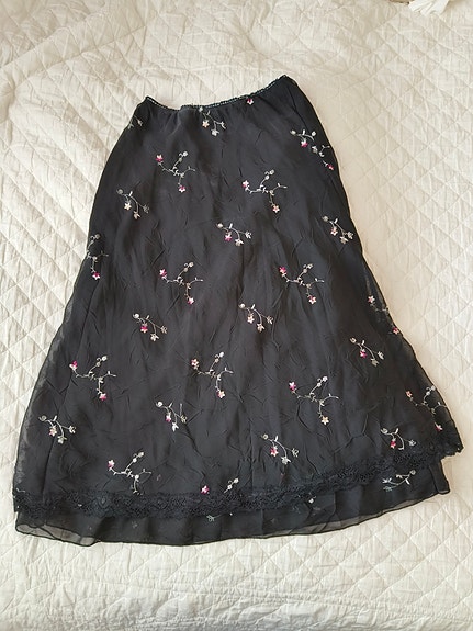 Musta kirjailtu kukkahame