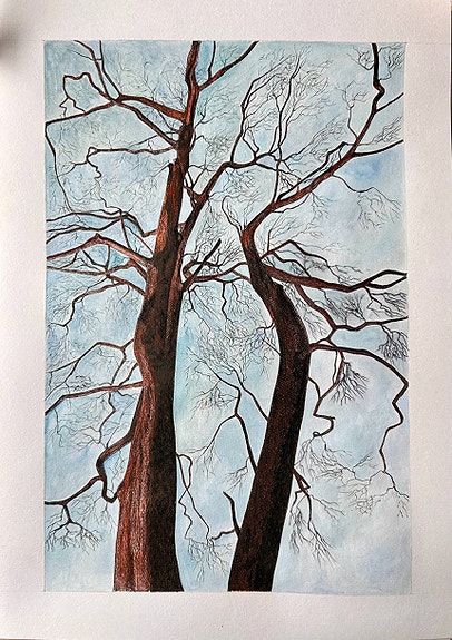 Alkuperäinen muste- ja akvarelliteos "Red Trees"