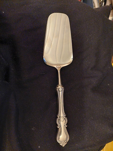 Hopeinen kakku-/leivoslapio