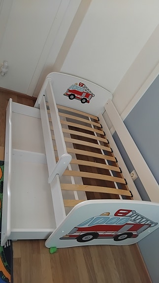Uusi lastensänky säilytyslaatikoilla