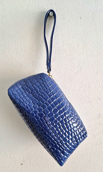 Sininen krokokuosinen rannepussi/meikkipussi