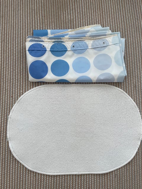Kylpyhuoneen matto ja suihkuverho