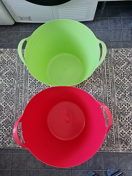Muoviset säilytyskorit kahvoilla pinkki ja vihreä