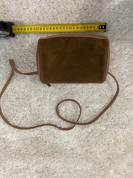 Pieni ruskea laukku pitkällä olkahihnalla