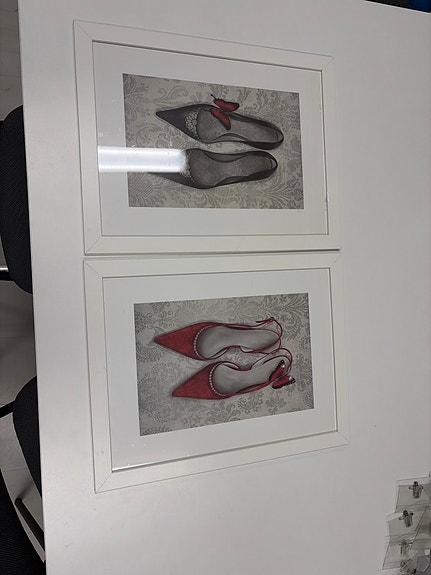 Kehystetyt kenkäaiheiset taulut 2 kpl