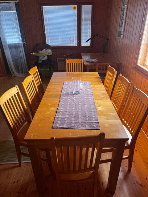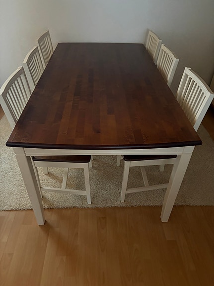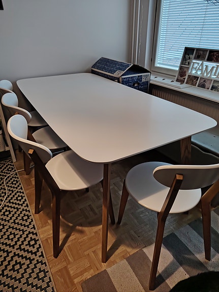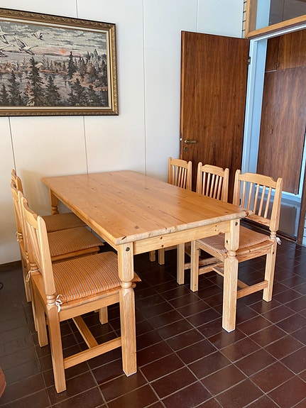 Ruokapöytä ja kuusi tuolia