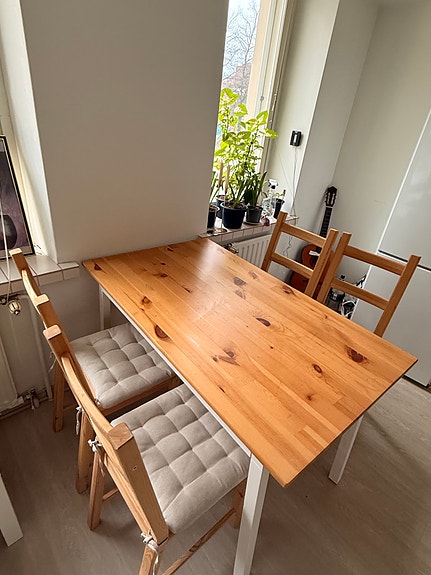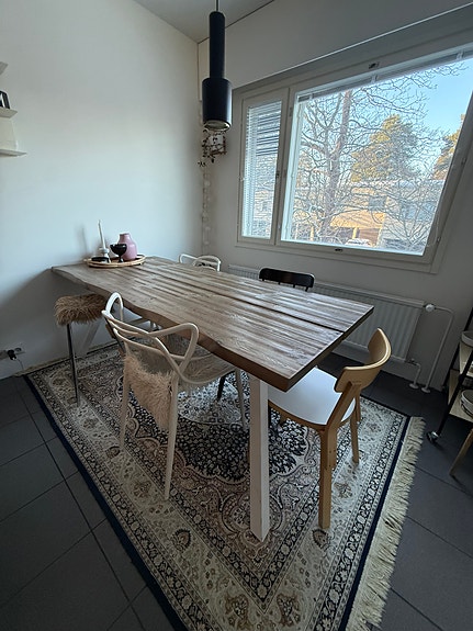 Ruokapöytä + neljä tuolia kaupan päälle