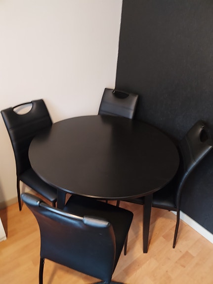 Pyöreä ruokapöytä halkaisija 100 cm ja 4 tuolia musta