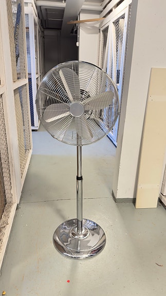 Metallinen jalustatuuletin krominvärinen
