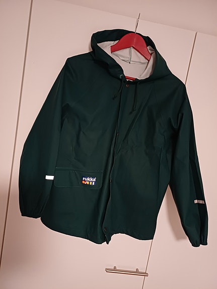 Lasten tummanvihreä sadetakki, 158 cm, Rukka