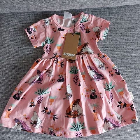 Moomin-merkkinen pastellisävyinen kesämekko (koko 92)
