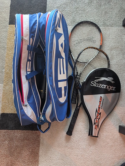 Slazenger tennismailat ja Headin mailalaukku sininen