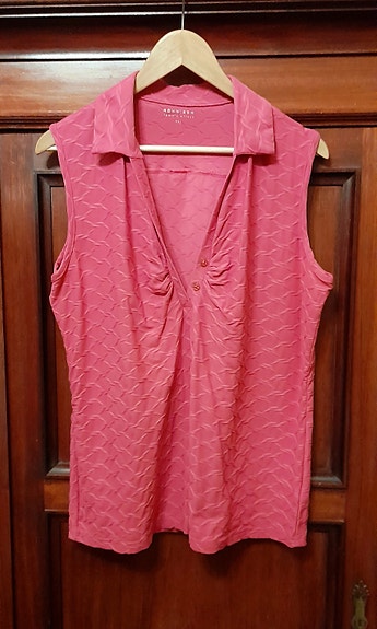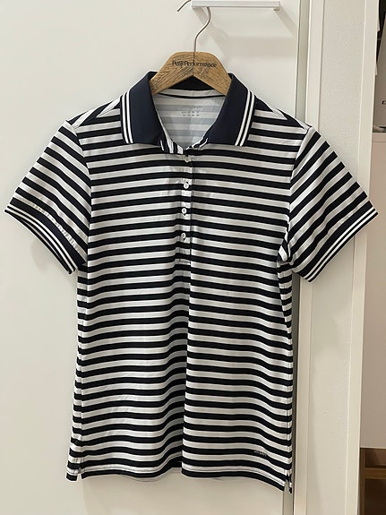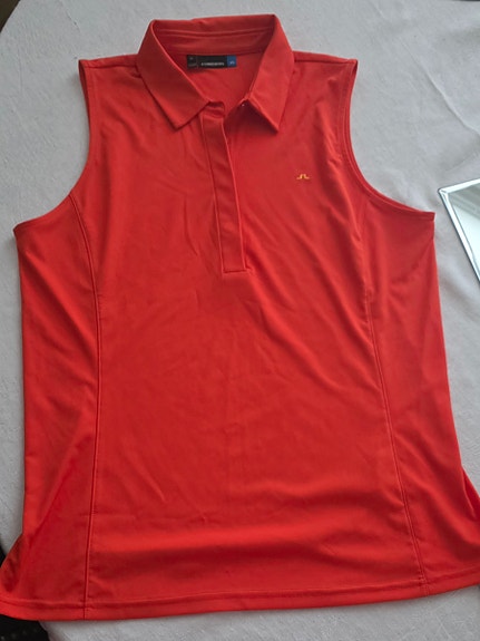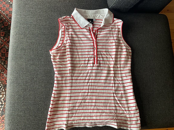Naisten hihaton raidallinen golfpaita ja oranssi golfpaita, koko S