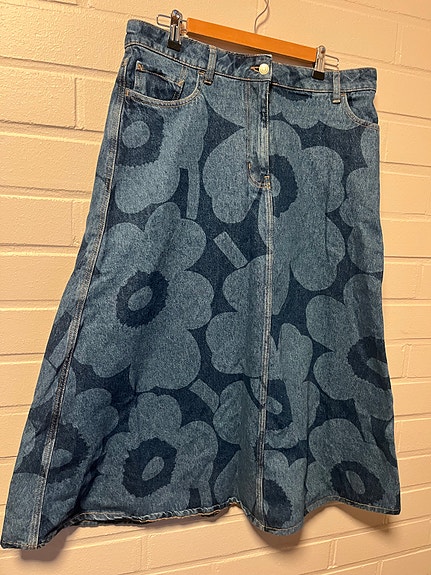 Marimekko sininen Vintage hame 40, made in Finland