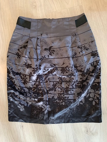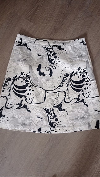 Musta-valkoinen/vaaleanpunertava hame ruseteilla, koko 42