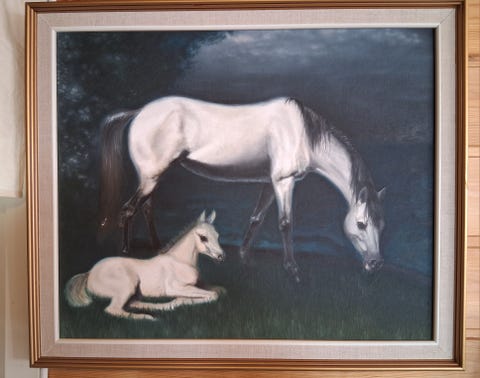 Hevosaiheinen taulu valkoiset hevoset