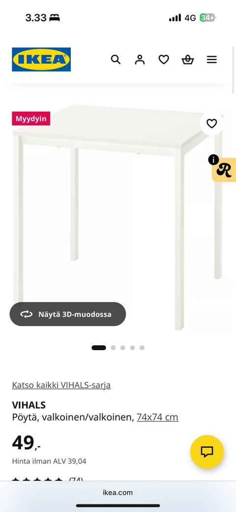 Silva ruokapöytä ovh 749,-