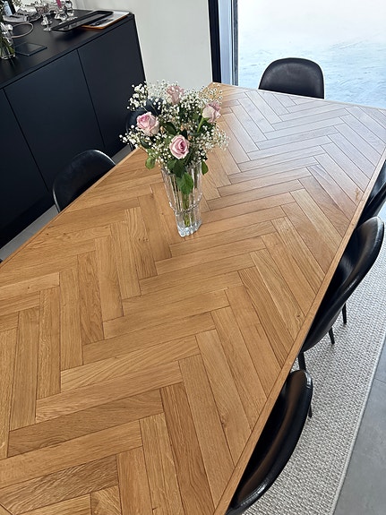 Tyylikäs tammipintainen ruokapöytä – moderni live edge -design