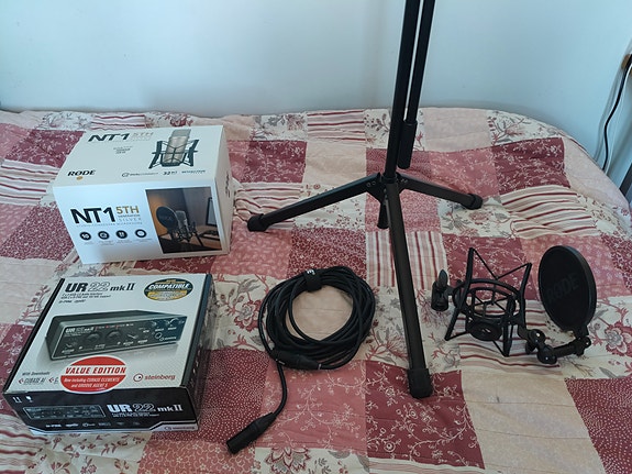 Musantekoon setti, Røde NT1 5th mikki Steinberg UR22 mkII äänikortti ym.